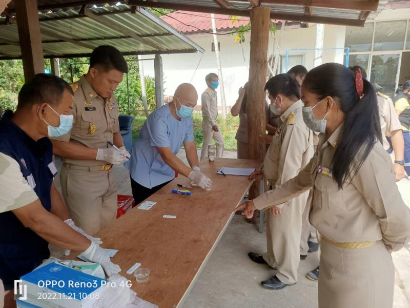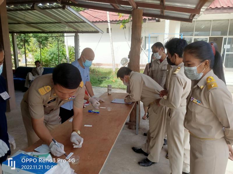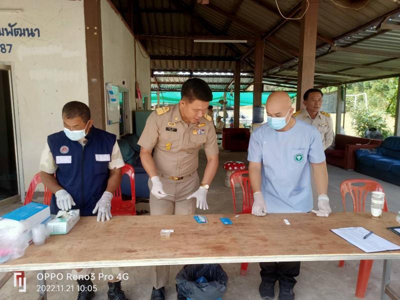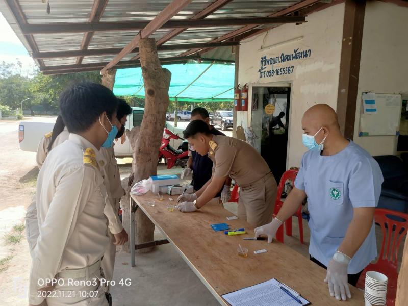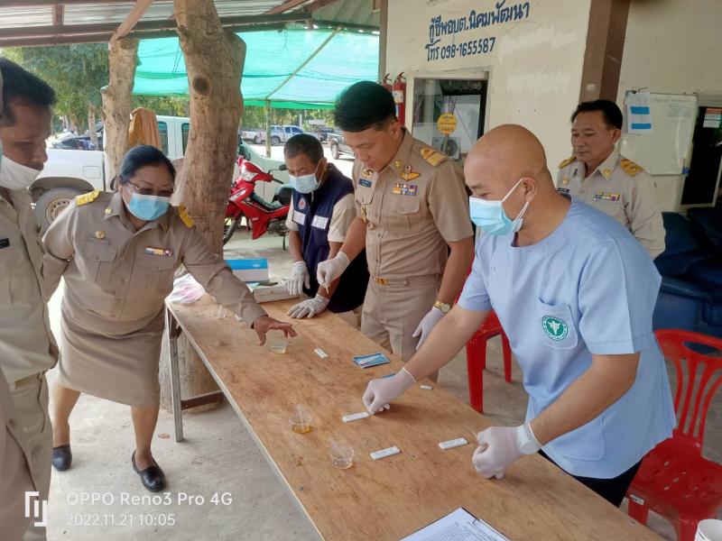 รายละเอียด : วันจันทร์ที่ 21 พฤศจิกายน 2565 เวลา 09.30 น. นายสมพงษ์ สร้างโสก นายกองค์การบริหารส่วนตำบลนิคมพัฒนา พร้อมด้วยคณะบริหาร สมาชิกสภา เจ้าหน้าที่ พนักงานส่วนตำบล เข้ารับการตรวจหาสารเสพติด โดยมีนายศุภชัย มณีรัตน์ ปลัดอำเภอหัวหน้าฝ่ายความมั่นคง และ นายพีระวัฒน์ สีลาบุตร ปลัดอำเภอ ฝ่ายความมั่นคง พร้อมด้วยสมาชิก อส. และ ผรส.ดำเนินการ Re X-ray ค้นหาผู้เสพ/ผู้ติดยาเสพติด เพื่อเข้าสู่กระบวนการบำบัดรักษา ขับเคลื่อนนโยบายจังหวัดสีขาว โดยทำการตรวจปัสสาวะคณะผู้บริหาร สมาชิกสภา และพนักงานเจ้าหน้าที่ของ อบต.นิคมพัฒนา ณ ห้องประชุมองค์การบริหารส่วนตำบลนิคมพัฒนา จำนวน 63 ราย ไม่พบสารเสพติดในร่างกาย