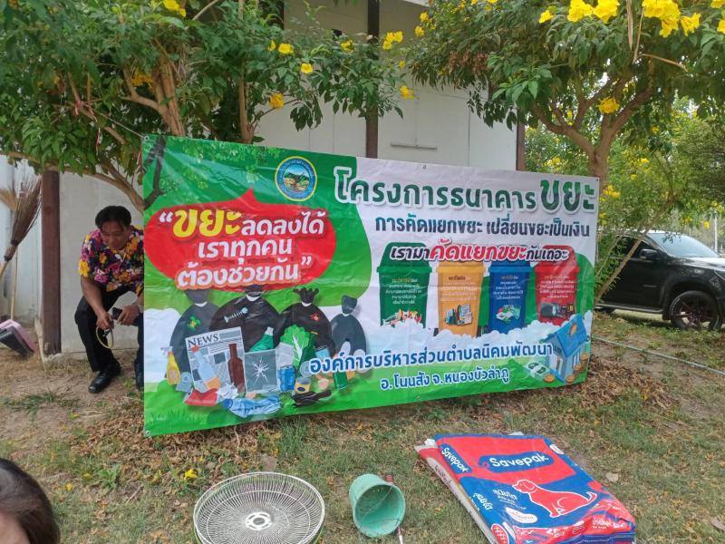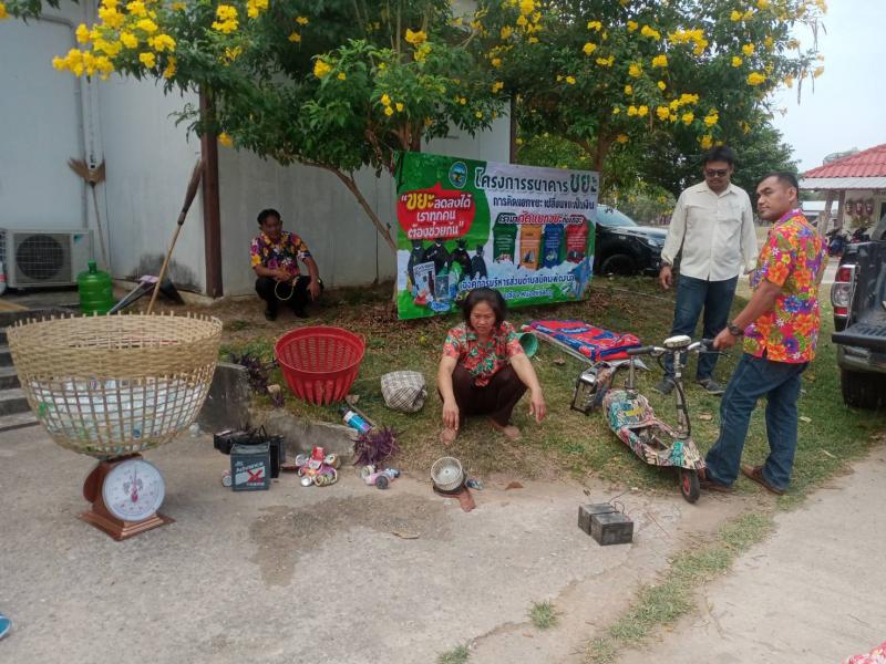 กองสาธารณสุขและสิ่งแวดล้อม องค์การบริหารส่วนตำบลนิคมพัฒนา บริการรับซื้อขยะตามกิจกรรมโครงการธนาคารขยะ