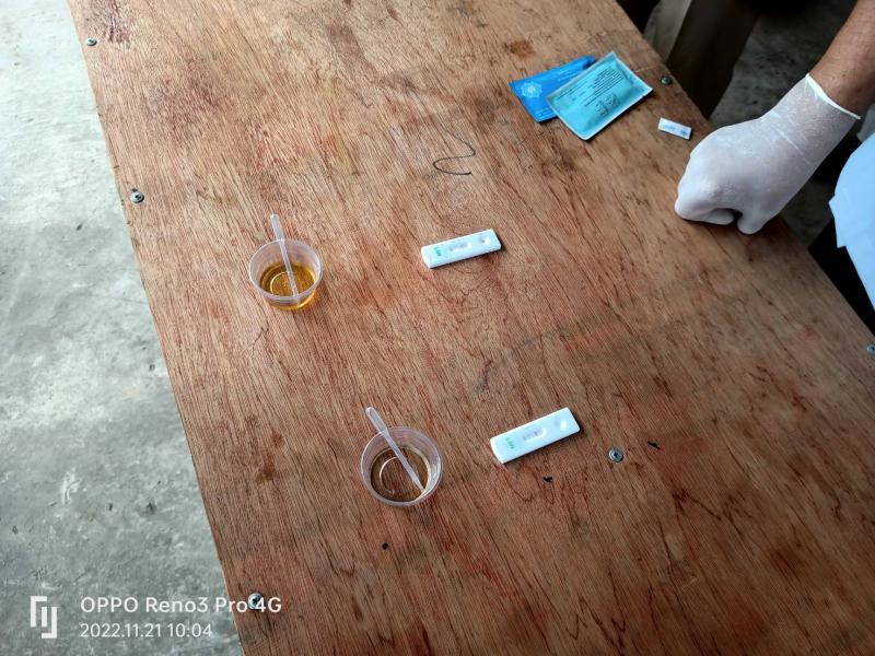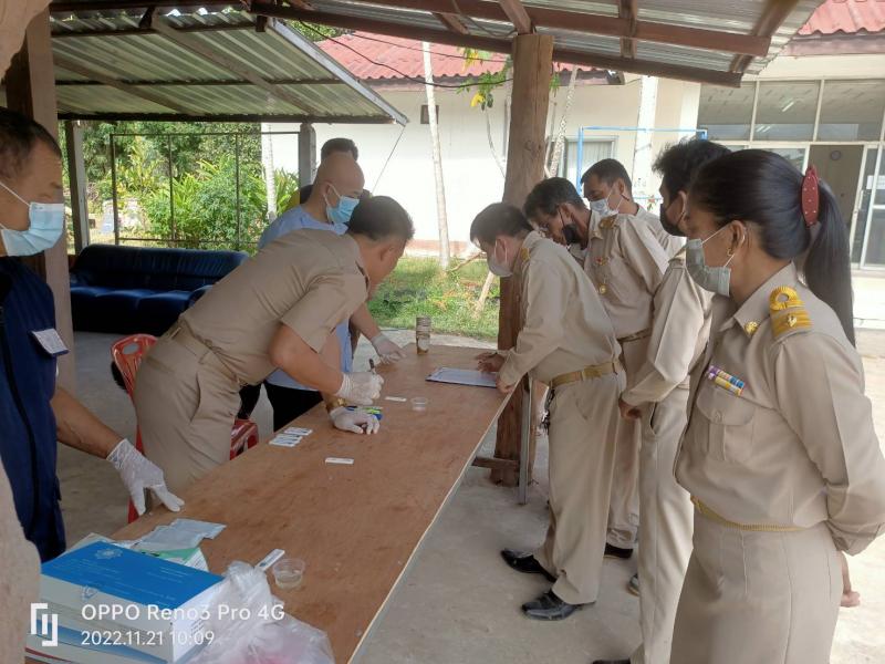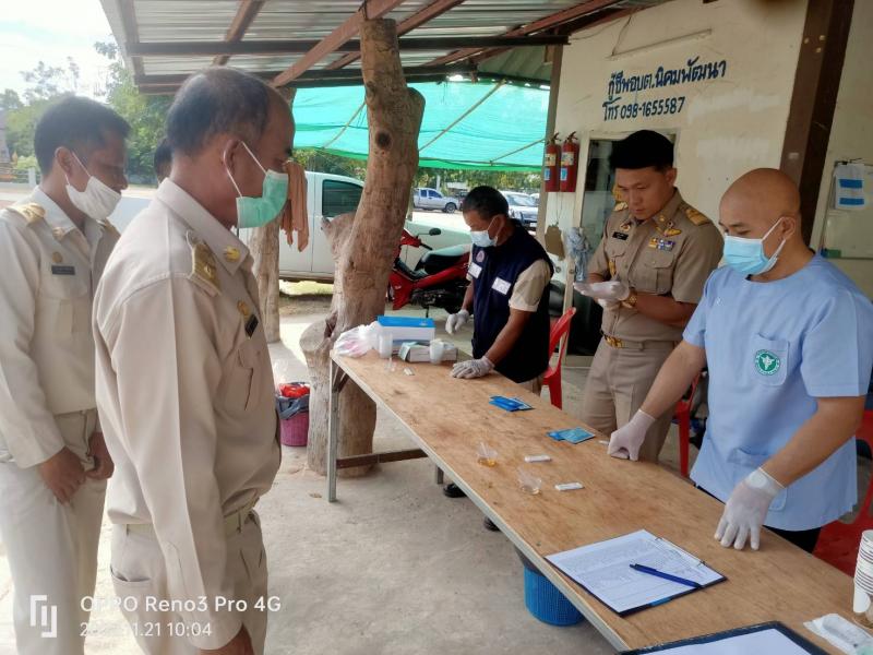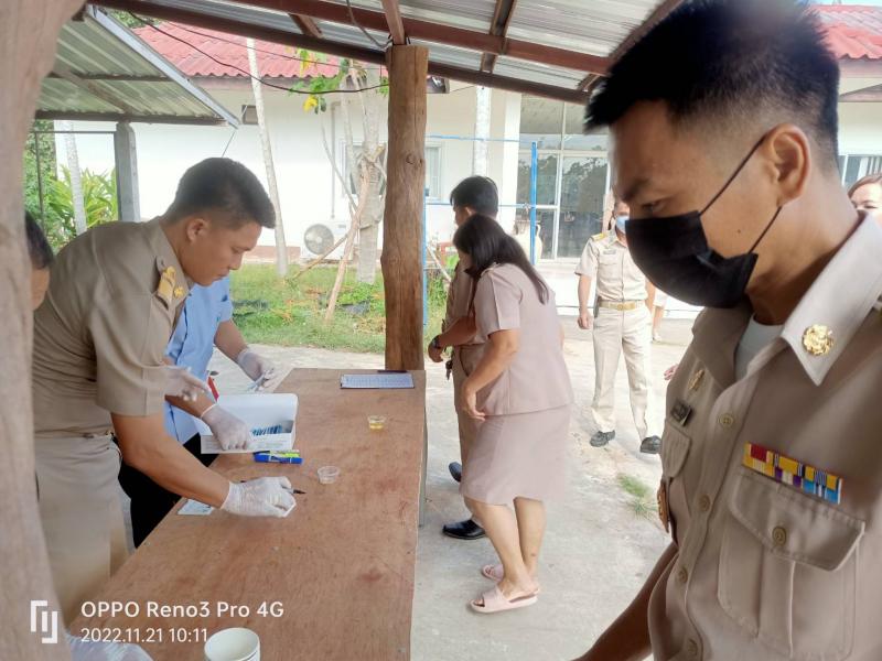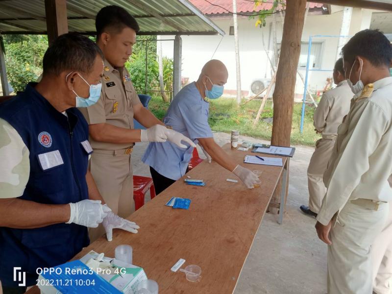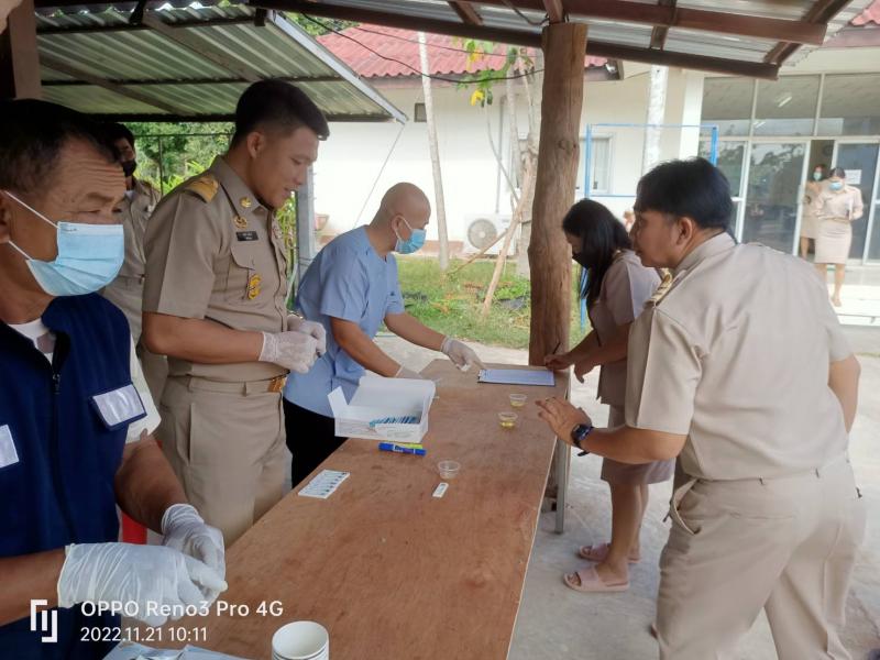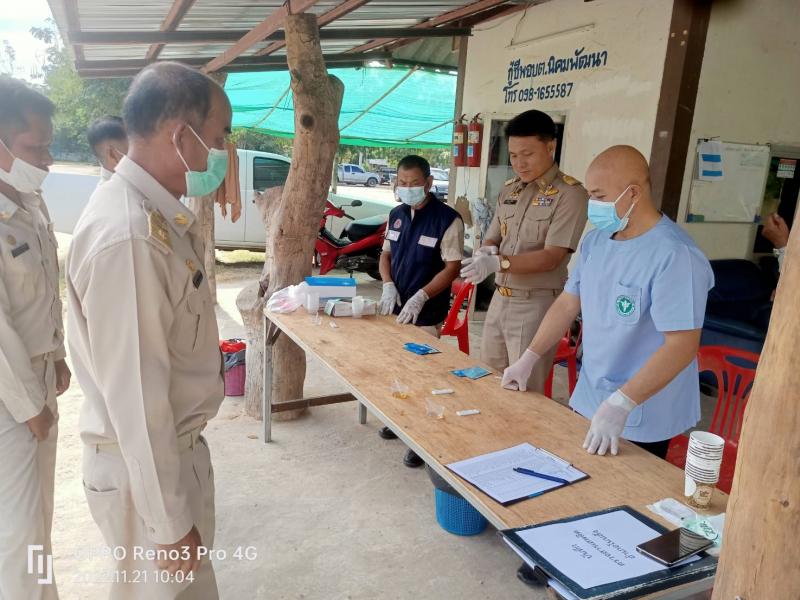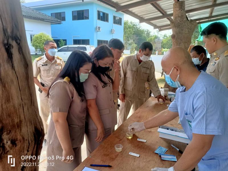 รายละเอียด : วันจันทร์ที่ 21 พฤศจิกายน 2565 เวลา 09.30 น. นายสมพงษ์ สร้างโสก นายกองค์การบริหารส่วนตำบลนิคมพัฒนา พร้อมด้วยคณะบริหาร สมาชิกสภา เจ้าหน้าที่ พนักงานส่วนตำบล เข้ารับการตรวจหาสารเสพติด โดยมีนายศุภชัย มณีรัตน์ ปลัดอำเภอหัวหน้าฝ่ายความมั่นคง และ นายพีระวัฒน์ สีลาบุตร ปลัดอำเภอ ฝ่ายความมั่นคง พร้อมด้วยสมาชิก อส. และ ผรส.ดำเนินการ Re X-ray ค้นหาผู้เสพ/ผู้ติดยาเสพติด เพื่อเข้าสู่กระบวนการบำบัดรักษา ขับเคลื่อนนโยบายจังหวัดสีขาว โดยทำการตรวจปัสสาวะคณะผู้บริหาร สมาชิกสภา และพนักงานเจ้าหน้าที่ของ อบต.นิคมพัฒนา ณ ห้องประชุมองค์การบริหารส่วนตำบลนิคมพัฒนา จำนวน 63 ราย ไม่พบสารเสพติดในร่างกาย